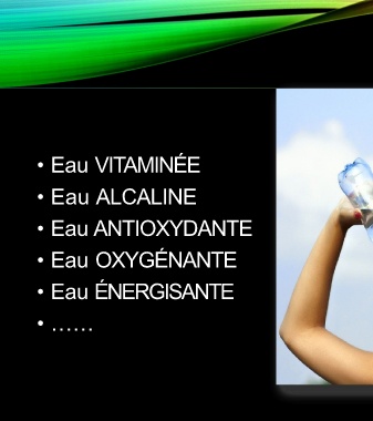 • Eau VITAMINÉE • Eau ALCALINE • Eau ANTIOXYDANTE • Eau OXYGÉNANTE • Eau ÉNERGISANTE • ……