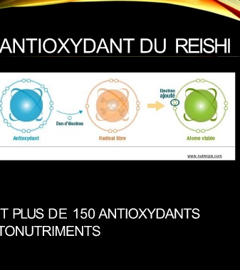 POUVOIR ANTIOXYDANT DU REISHI www.nutergia.com CONTIENT PLUS DE 150 ANTIOXYDANTS ET PHYTONUTRIMENTS
